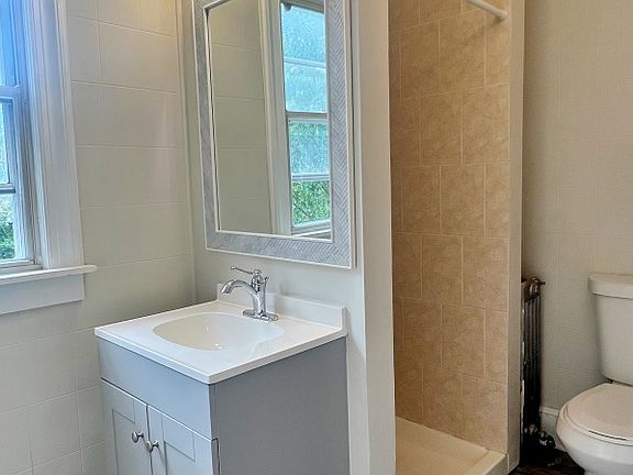 2nd floor 3 bedroom, 2 full bath (shower only) apartment with spacious living room, kitchen with stove and refrigerator and laundry room with washer/dryer hookups. No pets and no smoking indoors, 1-off street parking space in rear. 1 year lease term Tenant Pays electric and gas Washer/Dryer hook ups No pets & no smoking