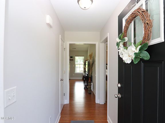 Do nothing but move in! Located in the small newly developed neighborhood of Waterford Ridge, this 3-bedroom ranch style home is sure to impress! From the covered front porch, step inside to the foyer onto beautiful laminate flooring. Relax in the spacious living room featuring a vaulted ceiling and gas fireplace. Enjoy preparing family meals in the U-shape kitchen that offers plenty of cabinet space, a pass through and stainless-steel appliances, including a Samsung Refrigerator. Just past the kitchen is a full bathroom and two bedrooms, one of which has a walk-in closet. On the other side of the house, you'll find a laundry room with a Cabrio washer and dryer that conveys and Master Suite complete with a trey ceiling, his and hers walk-in closets, garden tub and dual vanities. No need to worry about storage space as the 2-car attached garage offers overhead storage, a work bench and wooden shelves. There's even a smart garage door opener! The backyard is a beautifully landscaped oasis that's perfect for entertaining! You'll find a covered patio, pergola, BBQ station, fire pit and garden with tomatoes, peppers, cucumbers, green onions and basil! Only 15-20 minutes away from 3 different gates to MCAS Camp Lejeune. Close to shopping, schools, restaurants and beaches. Snap this one up before it's sold! Schedule a showing today!