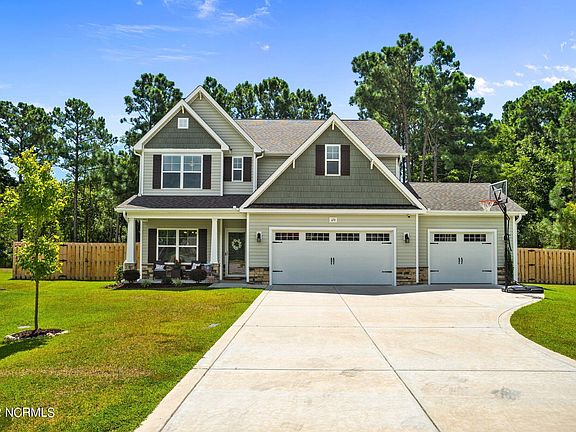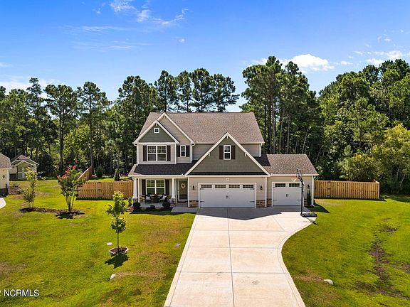 Welcome to this meticulously maintained home in the Coastal Community of The Preserve at Tidewater. This gorgeous 4 bedroom home is situated on a 1.82 acre cul-de-sac lot that offers lots of trees and privacy. Inside you will love the spacious open floorplan with beautiful vaulted ceilings. The kitchen features granite countertops, stainless steel appliances and lots of cabinet and counter space. The kitchen is open to the formal dining room as well as the living room- which makes it the perfect layout for entertaining. Another amazing feature this home offers is that the master bedroom is on the first floor! It offers 2 big walk-in closets and a master bathroom with dual sinks, a soaking tub and separate stand up shower. Upstairs you will find the other 3 bedrooms that each have their own walk-in closets, along with a full bathroom and a large loft area for everyone to enjoy. Another thing to note is the fact that this home has a 3rd car garage!! If you need space for house projects, extra storage, or even a place for an in home gym- you will LOVE having the extra space this 3rd car garage offers. If you enjoy being outside, you will love the screened in porch, garden box and all the beautiful landscaping this home offers. This home is within the sought after neighborhood of The Preserve at Tidewater which offers a beautiful community pool, clubhouse area and a nature trail to enjoy along the marsh. It's located approximately five miles from North Topsail beach and is a quick ten-minute drive to the back gate of Camp Lejeune as well as the Stone Bay gate. Schedule your showing today to see everything this beautiful home has to offer!