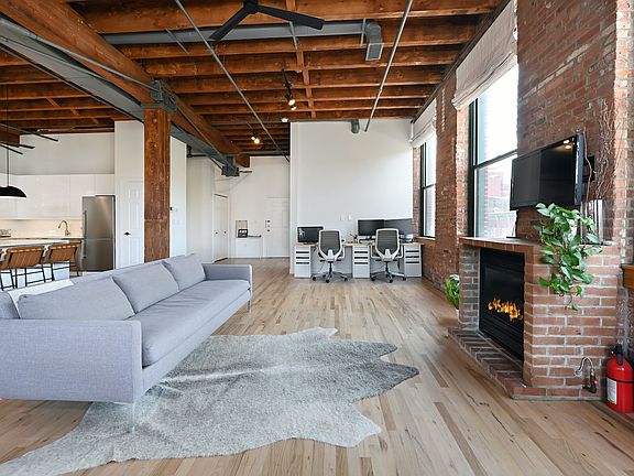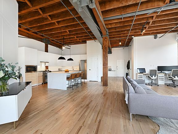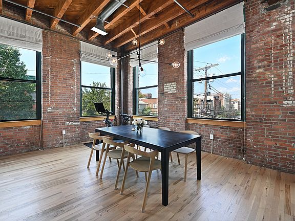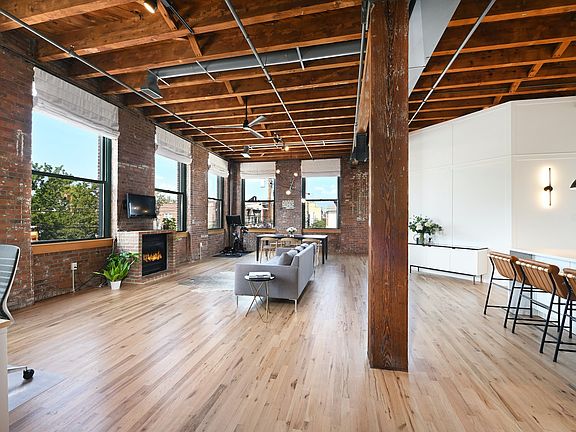 One-of-a-kind, grand, SoHo-style loft at the Hugo Pronti Artist Loft Building, a former suitcase factory, in one of the hottest neighborhoods in Jersey City. The loft sits on the corner of Webster Avenue and Hutton Street and is sure to astound you with 1,475 square feet of living space with 2 bedrooms, a balcony & gated parking for 1 vehicle! The loft features an amazing open floor plan with soaring 13-ft ceilings, highlighted by original timber beams, steel braces, exposed brick & ten 9-ft oversized windows offering open views and abundant light. The loft offers a stunning living area with a gas fireplace, spacious dining area, and a stunning open chef's kitchen featuring a 72-inch waterfall counter island providing ample storage below. The designer kitchen also includes a Bertazzoni gas range, microwave, dishwasher and a Blomberg refrigerator. Other highlights: in-unit Bosch Washer and Dryer, central heating and cooling with Google Nest, beautifully appointed bath, natural-color, matte, oak floors, and custom shades for the home. This is an elevator building with a video entrance security system. 126 Webster Avenue is located near restaurants, shopping, and is just 2 blocks to the NJ transit bus service to NYC on Palisade Avenue, 3 blocks to Riverview Fisk Park & 8 minutes to Hoboken's 2nd St Light Rail.