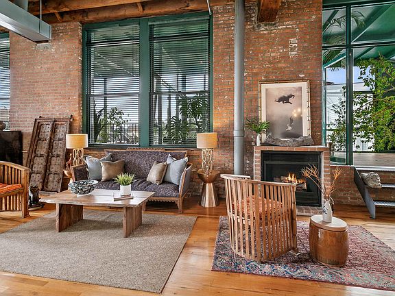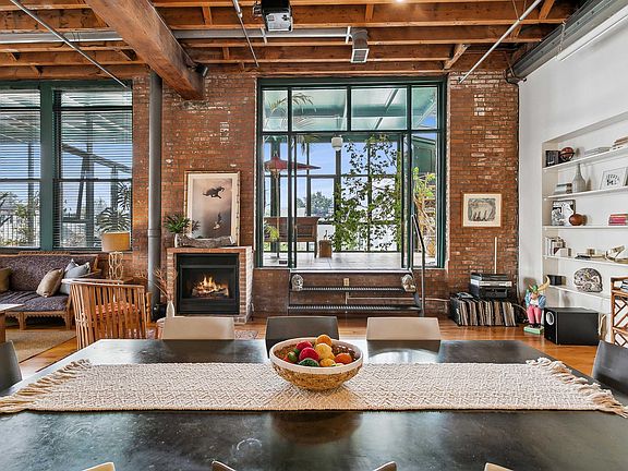 Living where you love means coming home to this stylish, one-of-a-kind large loft residence at the Hugo Pronti Artist Loft. This former suitcase factory is located in one of the hottest neighborhoods in Jersey City. Living is easy in this impressive, generously-sized 1,655 square foot corner loft residence. Delight in the expansive living area graced by 13 foot original timber-beam ceiling with industrial-aged steel supports and enveloped in exposed brick walls. The home radiates warmth through it's hardwood flooring, gas fireplace, and tiled 21.5'x12.6' private terrace. There is a large primary sleeping area with an additional work area that can easily be transformed into a second bedroom. There are 7 massive windows approximately 5'x9' throughout this spacious residence, allowing natural light to flow from the east and south-west from morning to early evening. Be Awed by the design and layout of the home, and be WOWED by the 34'7" x 12'5" Sunroom which faces south, it is currently being used as an additional sitting area and guest quarters. The home comes with a private detached garage for a vehicle and an approximate 5'6 x 14'10" private storage space in the building's basement. This is a pet-friendly, 28-unit loft building with elevator, bike area, a laundry area, and a video entrance/security system. Transit options include: NYC Bus service located 2 blocks away on Palisade. Light Rail station accessible in about 8 minutes. Riverview Fisk Park within 3 blocks and has a host of recreational activities, playground, seasonal farmers market and expansive views of NYC and the Hudson River. (See floor plan and alternative floor plan to add bedrooms).
