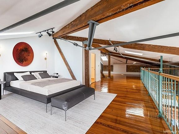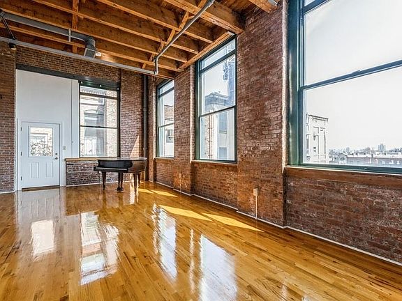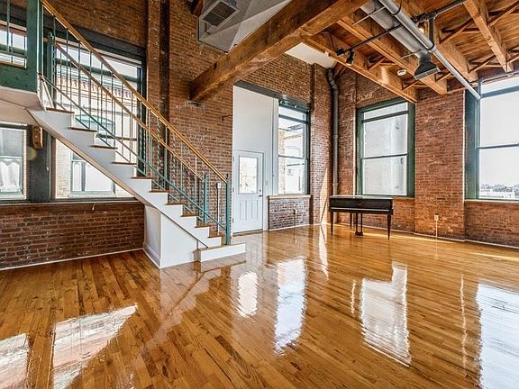 An oversized loft-style duplex with up to 20-foot high ceilings and exposed brick - - this penthouse unit is a one-of-a-kind experience. The unique layout, original timber and steel beams, and a private outdoor terrace make this home an industrial dream! Located in one of the most sought-after spots in Jersey City Heights, across from the Riverview Park and in walking distance to many restaurants, cafes, and boutiques. Very well connected to public transportation; commute to Manhattan within minutes. Deeded garage parking included. Other highlights include a gas-fireplace, central air, three skylights, oversized windows, NYC views…Must see!