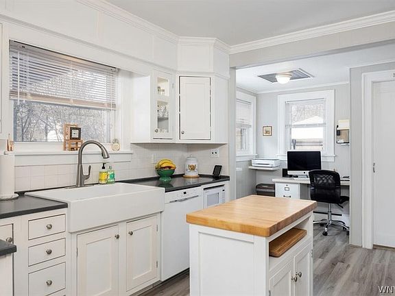 Outstanding all brick 2 story, 3 bedroom 1.5 bath in the heart of Amherst. Meticulously maintained and move-in ready. Updated kitchen with white cabinetry, solid surface countertops and newer floors and appliances. Gleaming hardwoods in living room, dining room, upstairs hallway and all three bedrooms. Beautiful solid wood doors, trim, handrail on staircase and bookshelves flanking the gas fireplace in living room. Family room overlooks rear deck and fully fenced in yard. Updated full bath and 2nd floor balcony off bedroom. Professionally landscaped, 2 car garage and car port. Prime location, this is a must see! Showings begin 2/23 at 3:00, all offers, if any, due Monday 2/28 at 3:00. 2022-03-07