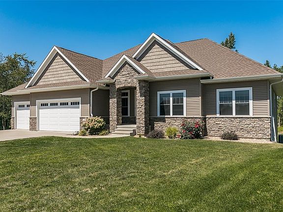 Quality built custom ranch on a 3/4 acre lot that backs up to woods. Stunning open kitchen with an expanded dining area, elevated ceilings and architectural details set this home apart. Upscale finishes throughout. Lower level walks out to private patio and an inviting outdoor kitchen. Entertain here!! An efficient heating and cooling system means low utility costs. Vacant lot beside this property is owned by the neighbor and will not be built on. The 14 acres behind the property is locked Hiawatha city land that is wetlands and can not be built on nor has any public assess. Lovely home.