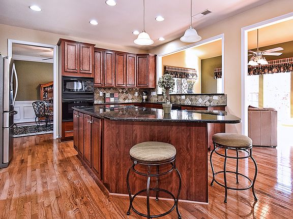 A rare find with finished walk out bsmt, including bedroom, full bath, media room, rec room and kitchen. Many fine details with wood flooring, granite counters. Updates include lighting, plumbing fixtures, dishwasher, door hardware, HW heater. Whole house water filtration. Extended kitchen island and morning room for a big and open kitchen work space. 4 large BRs on the 2nd floor and lots of bsmt rooms and storage. This is the whole package with 3 car garage, wooded privacy, excellent schools.
