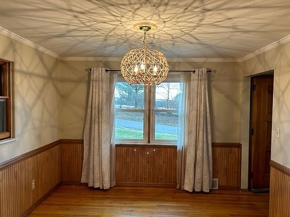 Lovely brick cape nestled in a great neighborhood. Plenty of space yet convenient to highways, schools, shopping and more! The 4 season room can be enjoyed as a family room, exercise room and/or office with auxilary heat. The living room is inviting with huge picture window and is the perfect space to relax! The formal dining room is perfect for family meals as well as entertaining! Hardwoods are exposed in living room, dining room and hall areas. A main floor bedroom is ideal for those who prefer 1st floor bedroom. Comfortable bedrooms on the upper floor, providing a private retreat with dormer windows framing scenic views. Lots of storage space. Plenty of room to roam in the huge yard with colorful perennial gardens that offers a private retreat, ideal for enjoying sunny days or entertaining guests. Rear entry garage and shed in rear yard. Newer HWH.