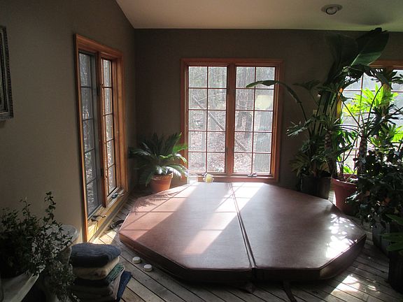 Custom built home with detached two car garage with breezeway between house and garage. Cedar siding. Recently stained and trim painted in 2014. Hardwood floors in foyer, LR, DR, and kitchen. New eat-in kitchen with granite countertops. Conservatory with recessed hot tub. Full finished Basement with separate gym room and shop Laundry on first floor. Private corner wooded lot. Two wood burning fireplaces - family room and master bedroom. New heating/ac system