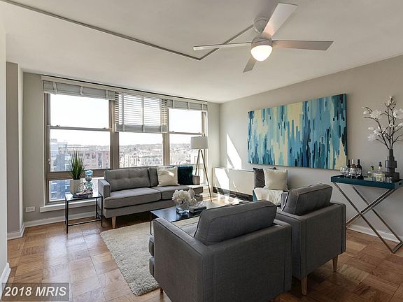 Open Sun 1-4. Enjoy city sunsets from top floor condo in The Newport. Great light/western exposure. Open reno. kitchen, reno. bath, wood floors, carpet in br. Spacious bedroom with walk-in closet. Roof deck with pool, 24 hr. desk for security/packages, laundry on every floor, pets allowed, condo fee incl. heat, AC, gas/electric. Walk score of 98! (Dupont/Foggy Bottom metro). Easy city living!