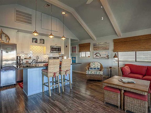 FISH off the wood deck or watch the sun set from the upper level in this PRECIOUS cabin on the canal. Pretty colors, granite in kitchen and bath, stainless appliances, high ceiling, open living/kitchen, furnished and ready for the summer. Sleeps 7, built in bunks in both bedrooms. Covered Boat House w/Lift & completely fenced yard. 26'-2" x 11'3" Covered Boathouse. Private Boat Launch area. Kitchenette, half bath, laundry, wet bar and outside shower all downstairs.