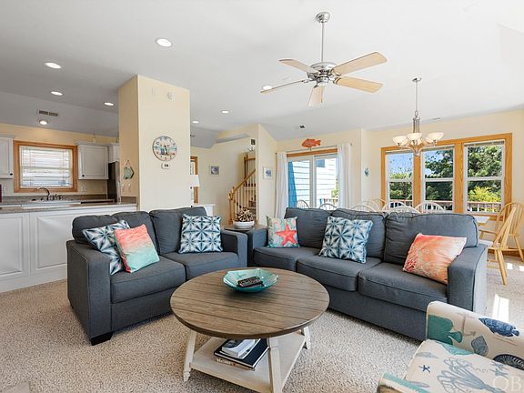 Welcome to Salty Suite, nestled in a serene cul-de-sac just 1,200 feet from the beach! This bright and cheery home has been meticulously maintained and is perfect for your family vacation, second or primary home! On the top level, you'll find the spacious great room featuring a cozy fireplace, the kitchen with all new appliances, and a versatile loft/office space. The primary bedroom, complete with an en-suite bath, offers comfort and privacy. Step out onto the decking off the great room to enjoy a morning sunrise or catch the mesmerizing sight of the Currituck Lighthouse in action at night from the rooftop deck. The mid level boasts a bedroom with its own en-suite, along with two additional bedrooms sharing the convenient joined bathroom between both. Downstairs on the ground level, there are three more bedrooms and another bath. The rec-room, equipped with a pool table and wet bar with full sized refrigerator is just steps away from the heated pool. A yard adjacent to the pool area provides ample space for outdoor games and fun activities. The Villages at Ocean Hill community enjoys access to amenities such as parking at two ocean access locations, an oceanfront pool with snack bar, tennis and basketball courts, a lakefront pool and clubhouse, a fitness club, and a playground for the little ones. The home is ideally located near popular Corolla attractions, including the iconic Currituck Light and the historic Whalehead Club. For nature enthusiasts, the property is conveniently situated near the N.C. Coastal Reserve & National Estuarine Research Reserve, as well as the renowned 4x4 beaches, offering endless opportunities for exploration and adventure. Salty Suite is the perfect home! Updates include: 2024 - A new Roof to be installed the end of May; 2023 - Exterior Paint; 2022 - New Living Room Furniture, New Kitchen Appliances, Installed Gutters; 2021 Both HVAC Systems Replaced, Both Water Heaters Replaced, New Hot Tub & New Pool Heater.