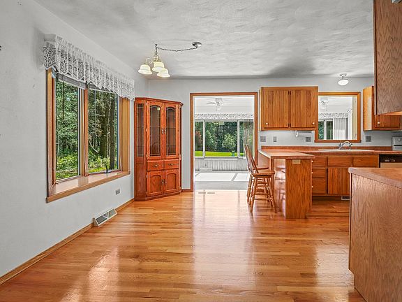 This light filled, spacious 3BR/3BA home checks all the boxes! Its nestled into 1.5 acres of the perfect combination, an open, level backyard space (with a fenced garden) surrounded by beautiful woods for privacy. The main floor is host to a primary bedroom/bath, a bath/laundry combo, a wonderful 4 season sunroom, perfect for morning coffee, & a 3 season room sure to be a hit when temps go up & so does the bug count. The second floor bedrooms are huge & the newer skylights keep the home bright & cheery year-round. The large garage is perfect for toys and/or vehicles & the snowmobile enthusiast will LOVE the side garage door with property access right to the trails on Hwy 70. Public access to the Eagle River chain is just down the road as is the Nicolet National Forest for off water fun. Youre just minutes from downtown Eagle River & all its conveniences yet feel so much further out. This home has been meticulously maintained & well loved! Call today or miss out tomorrow!