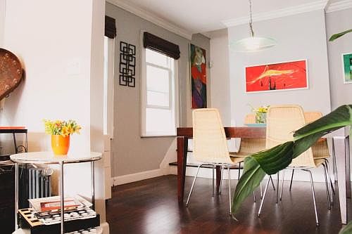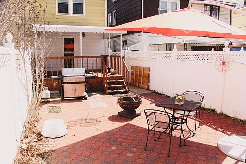 Modern tile floor- Hardwood floors- Vanity- Modern bathroom- Bathtub- Upgraded kitchen cabinets- Stainless steel appliances- New appliances- Modern kitchen- Granite counters- Dishwasher- Private house- House- Alarm system- Crown moldings- Large windows- Lots of lighting- Lots of natural light- Recently renovated- Upgraded windows- Basement- Closet- Dining room- Extra storage space- Backyard- Deck- Outdoor space- Cable-ready- Laundromat nearby- Driveway- Tree-lined block