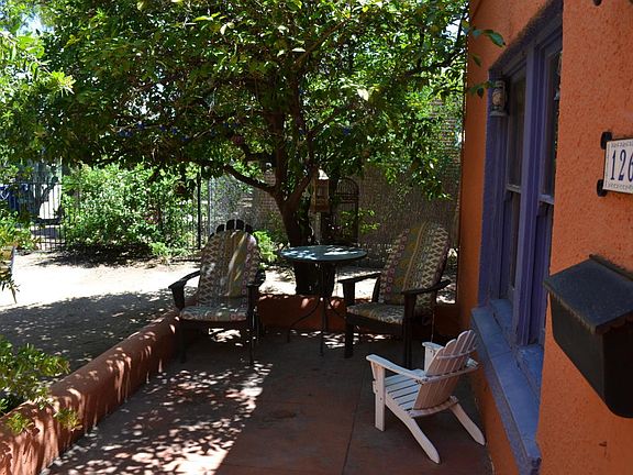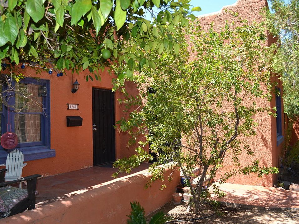 Charming, vintage 20's home plus a 500 +/- square foot un-permitted studio or guest house with a 3/4 bath. New interior paint! Original hardwood floors, coved ceilings, plaster walls, French doors, original cozy fireplace, and bonus room off the master bedroom in the main home makes this very quaint and special. Rent the studio to UA students? A 3-car enclosed, uncovered parking space is located in back. Newer A/C and roof re-coating. Mature landscaping and fruit trees. Close to U of A, Mountain Avenue bike path, Banner Hospital, downtown, shopping & restaurants. Properties like this don't come on the market often, so show & sell! No FHA or VA financing. Home and guest home need a little TLC.