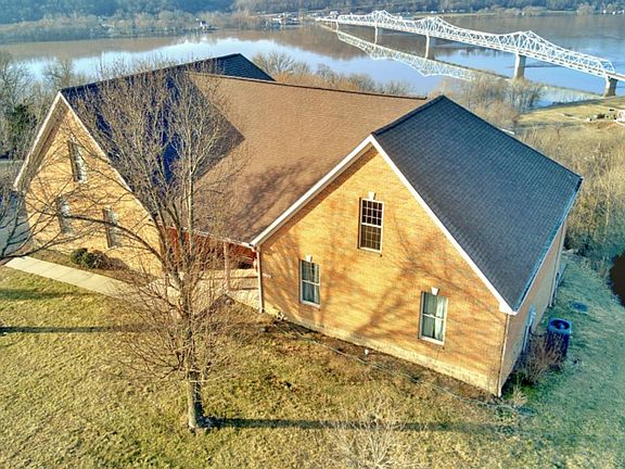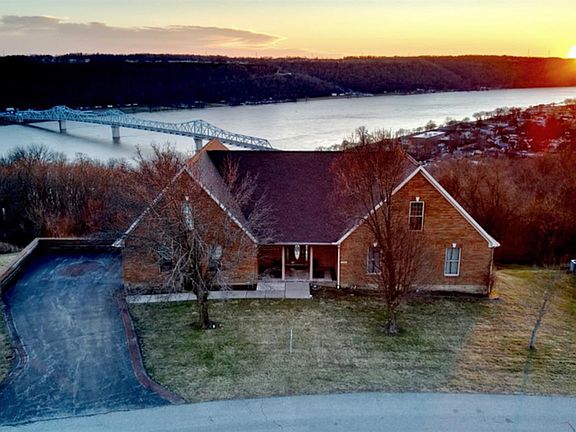 Spectacular is the only word to use to describe the setting of this custom designed home Overlooking the Ohio River & the the Milton-Madison bridge and MORE OUT YOUR WINDOWS/DOORS/ WOOD DECK BALCONIES! Come home to this 5 BDRM 4 full bath brick property with an over sized attached garage and enjoy relaxing and entertaining in this outstanding home ! Kitchen has an island & lots of cabinets, master bath has super beautiful views w/a jet tub & separate shower, lots of walk-in closets throughout, home has a newer roof, sparkling wood floors on main level, large laundry room w/ washer/dryer, all kitchen appliances remain.Lower walkout level could easily be a separate suite, w/ 2 BDRM's, a full bath, a living space & kitchenette also with incredible views! There is a private outdoor access room that would make a great artist's studio, exercise space or a workshop w/ views of the river!Only minutes to the downtown area of the historic river town of Madison,In, A TRULY IMPRESSIVE PROPERTY!