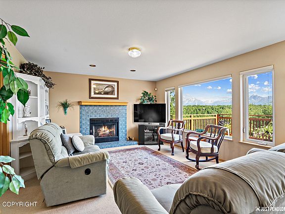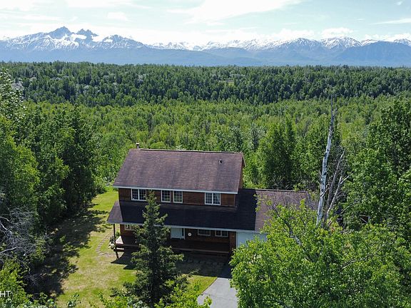 Seeking a home with amazing views? How about a convenient location but still feeling like you have your privacy? Welcome to your perfect retreat! This beautifully maintained two-story house with a basement offers spacious living and an oversized two-car garage. Nestled in a well-established neighborhood in Wasilla, this property seamlessly combines the convenience of city living with the sereneatmosphere of the countryside. Step inside to find a warm and inviting living space with a cozy wood fireplace and in-floor heat, perfect for those chilly Alaskan winters. The home boasts three spacious bedrooms and two and a half bathrooms, including a primary suite designed for comfort. Outside, the large back deck and charming front porch offer ample space for relaxation and entertaining,