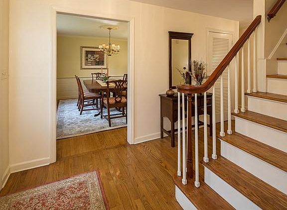 If you want a kitchen that is the heart of the home + a large FR in a family-friendly neighborhood, then this is your home! Large custom kitchen w/palladium window overlooking a tranquil backyard, center island, dbl ovens, 6 burner cooktop, s/s appl & room to seat 6. All 4 BR's, LR & DR have H/W floors & all 3 baths have updates. Property sits pretty on a private acre w/stone walls & mature landscape. Convenient to M/Pkwy & shopping. Also features : Azek deck, huge dry basement, laundry room, shed, 2 car att. garage, newer A/C, h/w heater, electric & gas furnace. Potential to expand but not price yourself out of this sought after neighborhood.