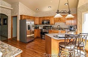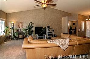 Immaculate, updated stucco rancher with great view of the mountain range, backing up to Open Space. Sunny and open, with vaulted ceilings and generous room sizes. The spacious great room with vaulted ceiling and fireplace boasts views of the mountain range. The sunny kitchen with vaulted ceiling, granite counter tops and stainless steel appliances is adjoined by an inviting breakfast nook. The spacious master suite with large,walk-in closet is adjoined by the master bath with jetted tub and separate shower. There are two