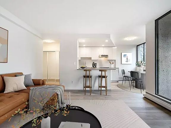 Welcome to Sutton Gardens, a 21-story concrete high-rise with 108 suites, perfectly located in the heart of the West End. Just steps from Robson Street, West Georgia shopping, Stanley Park, and English Bay, this building offers both convenience and tranquility.This renovated, luxurious one-bedroom suite is filled with natural light and features warm colors, high-end finishes, and a full private balcony. The kitchen offers plenty of cabinet space, quartz countertops, and all stainless steel appliances fridge, stove, dishwasher, and an in-suite combo washer/dryer. The suite also features stylish vinyl plank flooring and one generous closet.Enjoy life in a quiet, secure, and friendly building in one of Vancouver's most walkable neighborhoods.