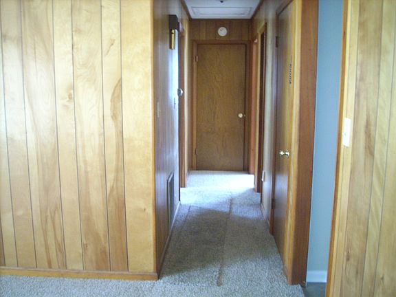 Brick and vinyl ranch home on 2 acres. Big back yard with 2 outbuildings. 2 driveways. Newly remodeled throughout. New paint. New carpet in living room and bedrooms. New linoleum in kitchen, dining room, den, and both baths. Has 2 bedrooms, 1 and 1/2 baths. Living room, den, kitchen and dining room with pantry. Enclosed back porch or sun room. Unfinished basement. Oil heat and central air.