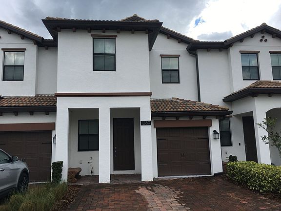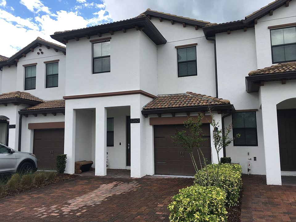Welcome to the Vistas at Champions Gate! This 3 bed, 2 1/2 bath townhome with beautiful water view overlooking the CG golf course is where you want to be. First floor features expansive great room, separate dining room, powder room and designer kitchen with granite countertops and GE/Whirlpool Slate appliances. Upper floor has three bedrooms with two full bathrooms, and a laundry room with GE washer and dryer. The large master bedroom boasts a spacious private bath with gorgeous tiled shower and dual sinks with granite vanity. One car garage with garage door opener. This home is energy efficient and comes with internet, basic cable, telephone, valet trash service and lawn care included. The Vistas clubhouse features a resort style swimming pool with heated spa, a fully equipped fitness center, wet sauna, game room with golf simulator, all in a secure gated community. Champions Gate is also a golfers delight with two 18 hole Greg Norman designed championship courses. Shop and dine at the Champions Gate Downtown Center with two Publix grocery stores just 5 minutes away, or visit the nearby Posner Park shopping center. Convenient location to I-4 for quick access to Disney, International Drive and Orlando. Notes: - income 3X rent ($6600/month) - small pets with adult weight under 20 pounds only - security deposit = one month's rent (credit score over 630) - no prior eviction filings - application fee $55/adult - HOA approval required