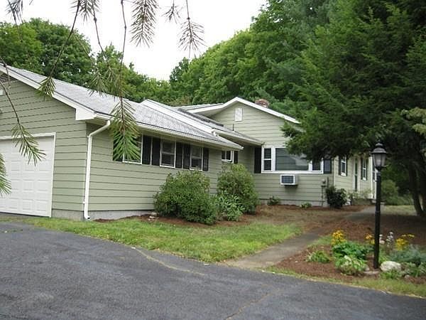 This freshly painted South Amherst ranch will surprise you with its open floor plan, large common rooms and amazing easterly views of conservation land and the hills beyond. The lot abuts Poets Walk leading to the Robert Frost Trail for your nature walks. The living room with cozy fireplace and french doors leads into an open dining room and spacious retro kitchen featuring brand new appliances. The step-down family room has expansive views to the east for quiet contemplation and access to the deck for your outdoor dining and viewing.