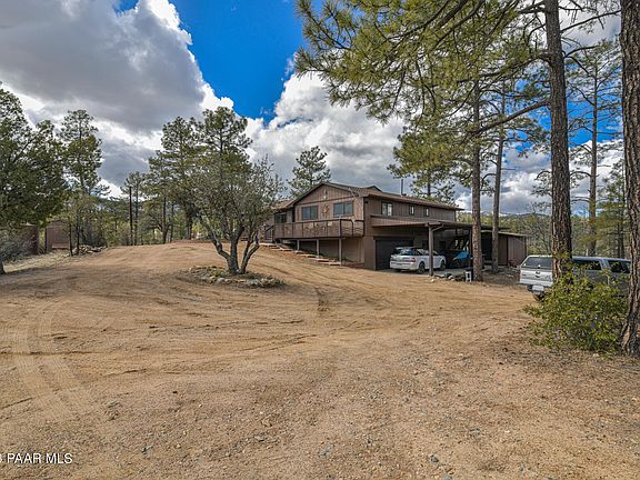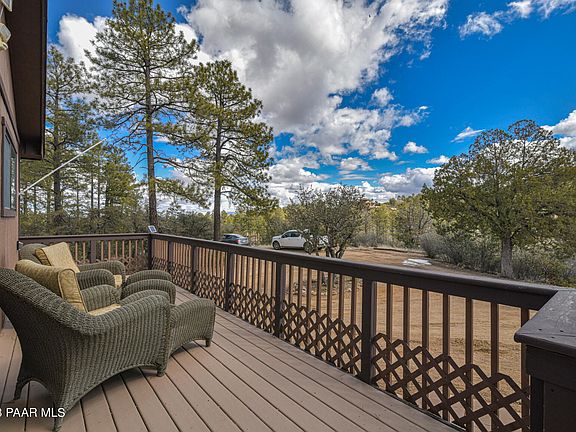 Beautifully updated home nestled amongst the pines on 4.68 acres in Prescott! Privacy and serenity within a few minutes of downtown. This meticulously maintained home offers 3 bedrooms, 2 bathrooms on main level. Lower level can serve as a separate apartment, complete with a large living area with fireplace, bathroom, and kitchenette. Stunning kitchen with modern accents features ample storage. Spacious family room with cozy gas fireplace and windows that afford gorgeous mountain views. Master bedroom features deck access, walk in closet, and en suite bathroom.  Entertain family and friends or just relax and enjoy the stunning views of both Granite Mountain and Thumb butte from the front, back, and side decks. Fenced back yard for kids and pets. Parking to accomodate vehicles, toys, RV.