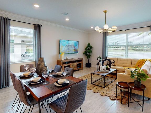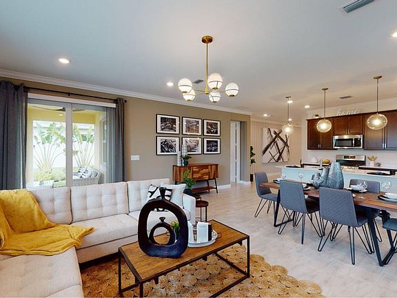 Exclusive to active adults 55+ and better, this new single-story home features a convenient open design shared by the kitchen, dining room and Great Room, which opens to a covered terrace for relaxed living. Two secondary bedrooms toward the front of the home are perfect for guests, and the luxurious owner's suite is easily accessible from the living areas.
