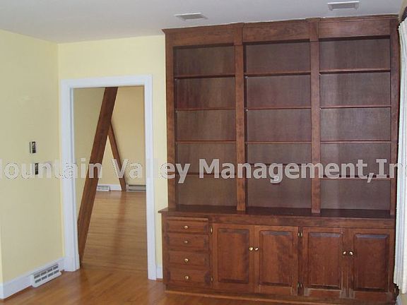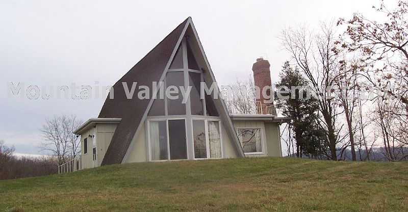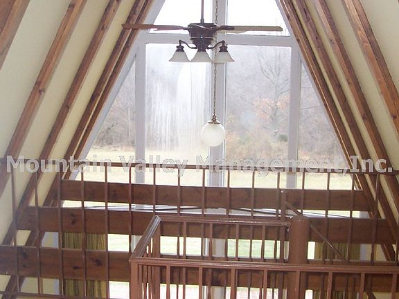 Country setting just minutes to City of Harrisonburg. Chalet A-Frame style home with vaulted ceiling in living room and spiral staircase to 2nd floor. Beautiful hardwood floors throughout. Den features a large bay window with mountain views, brick wood burning fireplace, and built-in cabinets/bookcase. Master bedroom on first floor with full bath and balcony. Second floor features an additional bedroom with balcony, half bath, room for a computer desk/sitting area, and a roof top deck. Basement includes a single car garage, workspace, half bath, and storage space. Photo's are a representative sample and actual condition and decor may be different. Heat pump and central air. A must see! This property is leased and professionally managed by Mountain Valley Management Inc.