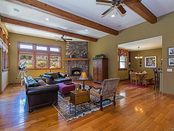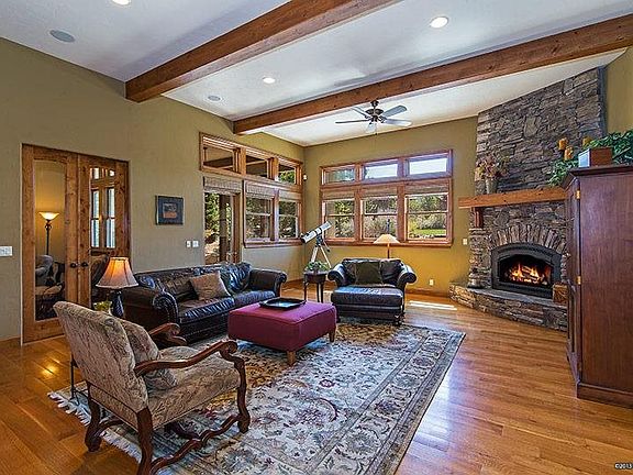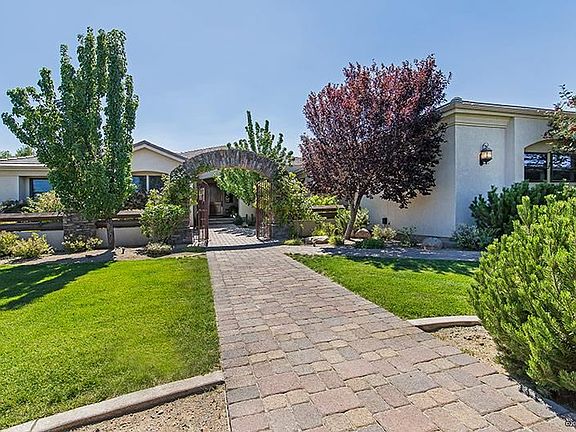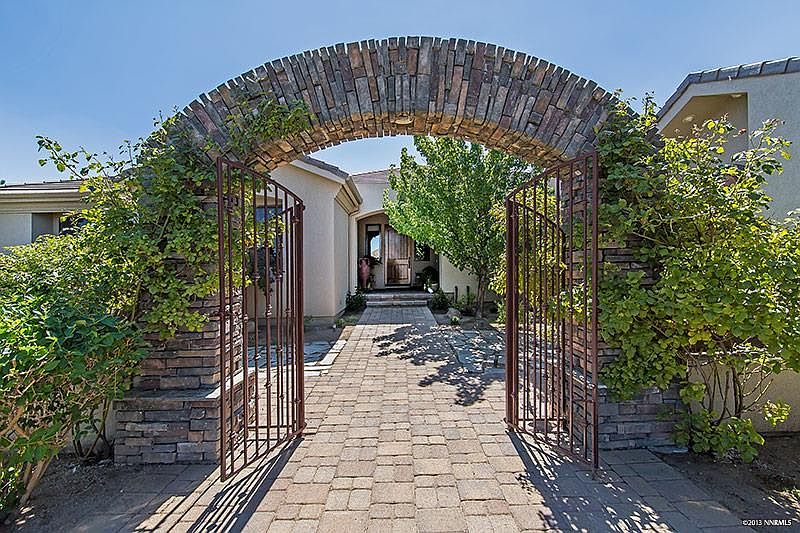 This lovely home located in the gated community of Silver Wolf in South Reno is situated on .95 of an acre all beautifully landscaped. A stone archway and wrought iron gate lead to the courtyard and main entrance. Courtyard features pavers and a fountain. Outdoor living expands in the backyard which includes a covered patio with wood burning fireplace & a built in BBQ. 4487 SF all on one level; The large great room includes tall beamed ceilings, stone fireplace with custom mantel; Delight the