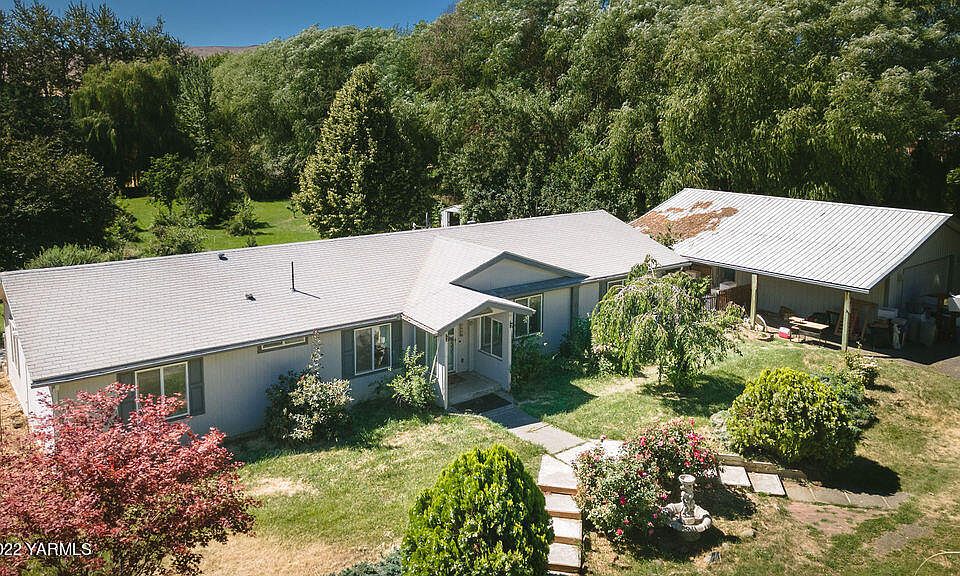 Located in the Cowiche/Highland area, this 1,890 square foot manufactured home offers a spacious detached two-car garage/shop (storage and power inside) on a beautiful 2-acre lot. The home features three bedrooms and two bathrooms, and an open-concept design. The property continues outside with a covered front porch, large backyard deck, being fully fenced, and a manual/fixed sprinkler system setup. Additional features include a forced air heat, Central A/C, RV parking, irrigation, and more!