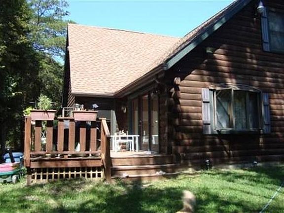 Privat but very accessable. Lovely 2 st.Log Home custom built. Interior all custom kit. cabinets(cherry) kit.Island. 2 decks,Great room w. High ceilings& trapizoid windows.Ceilings fans & central air. Propane & electric heat. Lovely open staircase to sec. floor with addit. 2 bedr. plus mod. baths. Masterbath w. double vanity. One of a kind home & very,very low taxes!!