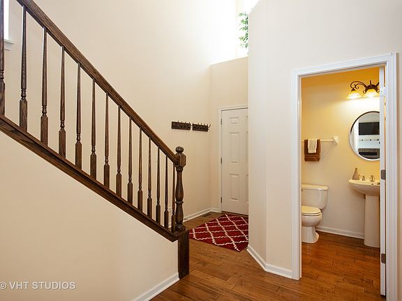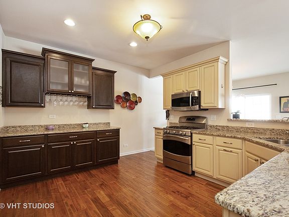 Why build when you can own this luxury "Plote" built premium end-unit townhome. Former builders model, 2 story custom end unit with tons of upgrades & premium location. The Carrington model features a 3 bedroom floor plan. Loft can easily be converted back to original design. THIS home is immaculate and shows like new construction. Open floor plan, high end hardwood floors, Pella windows & slider, vaulted ceilings, gourmet chef's kitchen with 42" inch maple glazed cabinets with soft close technology and recently added butlers station with built in wine rack, granite counters, breakfast bar & high end stainless appliances. Large dining area compliments the spacious living room with designer fireplace & surround. Master bedroom suite boasts a huge walk in closet and luxury master bath. Custom finished lower level features large rec room, full bath & built out for a wet bar. Large deck off the living room and kitchen with a beautiful, private view. Minutes from the Metra = 10+++