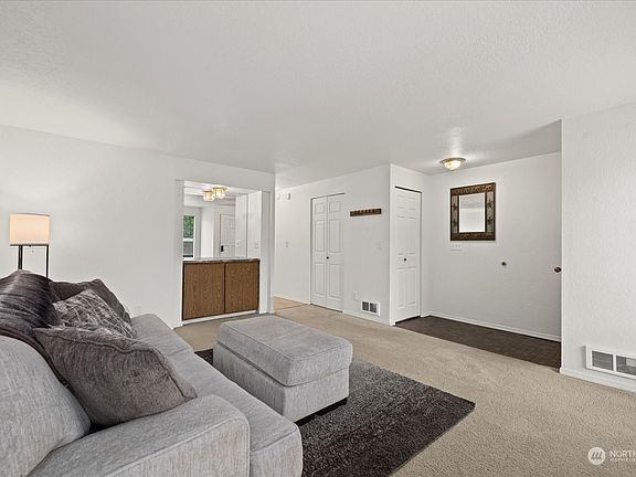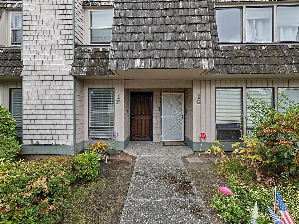 Charming 2-bedroom townhouse with private suites for both bedrooms! This inviting home features a cozy living room with a fireplace, an open kitchen with eating space, and a dining room leading to a relaxing patio. The well-maintained complex offers a large outdoor pool, exercise room, sauna, hot tub, clubhouse with kitchen, dog park, basketball court, and community garden. The main level has a utility room with washer/dryer. Upstairs, each bedroom has its own bath. The primary suite includes a private deck, double closets, and walk-in shower. Located in a low-traffic area with a sunny east-facing front door, it comes with two parking spaces one covered and ample storage. Enjoy easy access to I-5, public transit, shopping, and dining.
