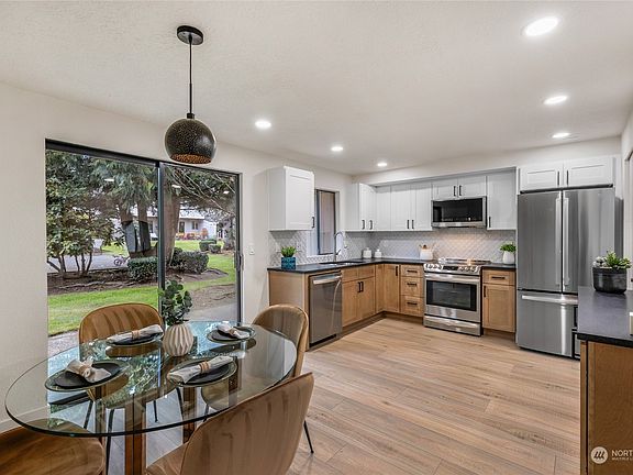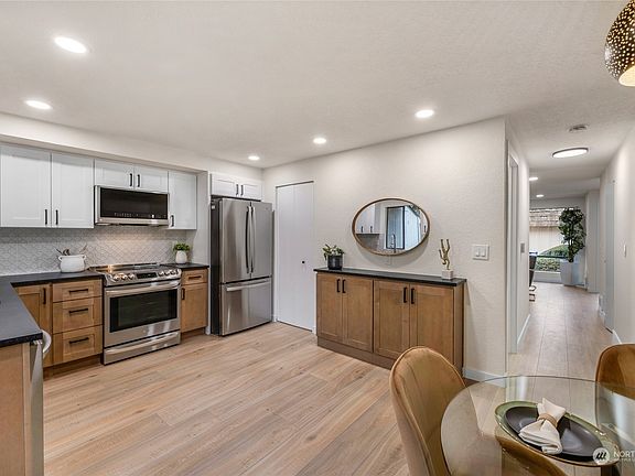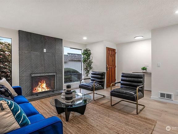 Step into a realm of contemporary chic where every remodeled detail exudes class. The living room is a sanctuary of style, boasting a breathtaking fireplace crafted from imported exotic tile, creating a focal point thats easy to relax in. A dream kitchen with NEW smart LG stainless steel appliances, handmade ceramic tiles & granite countertops with a luxurious leather finish. The primary features a balcony & dual closets with a walk-in shower and an upscale marble design that is simply to die for! The 2nd ensuite bedroom/bath has its own distintive allure. Amenities incl clubhouse-outdoor pool-exercize room-hot tub-sauna-garden& more. Tons of storage, 2 covered parking spaces. Close to I-5 & Boeing. You're going to love where you live!