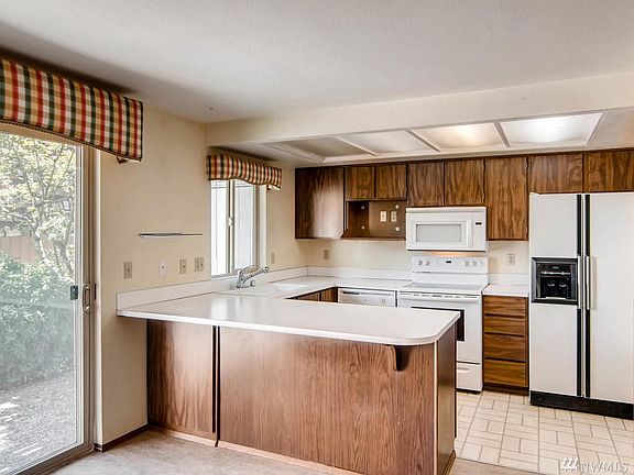 Spacious condo in a great location, close to shopping & highway, Boeing. End unit with backyard privacy. This complex has a club house that includes workout room, outdoor pool, sport court. Entertainment wet bar, windows with custom treatments throughout. Large kitchen/dining area, full sized washer/dryer. Big shelves/storage galore. 2 carports with storage. 2 huge bedrooms, each with its own bathroom plus main floor bath for everyone.