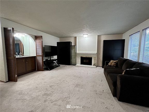 Welcome home to your beautiful end unit two story townhouse. Not one but TWO spacious primary suites with ensuite bathrooms, one with private balcony. Comfortable living in front room with cozy wood fireplace and wetbar. Open kitchen with immense natural light, breakfast bar and dining space that leads out to your private back patio with covered space. Amazing location and community! Large lawn space and garden area right across from your unit! Pool, Hot Tub, Cabana, Two Saunas, Exercise Room, Sports Court and Game Room for residents. Easy access to I5, shops, dining, public transportation, Plaine Field Airport and more! Extra parking to come to the right of unit, temporary fencing for roof work currently being done.