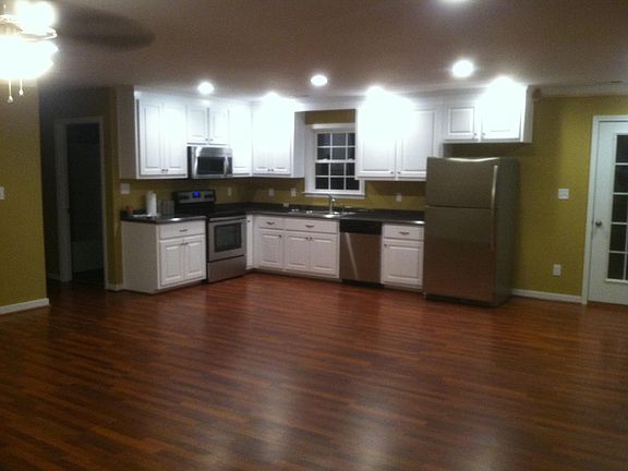 Fabulous home for first time home buyer! Open floor plan great room Kitchen/living and dining area all in one big bright room. Laminate floors in great room and bedrooms. Kitchen has flat top range. Hall bath and large laundry room (with big closet) have ceramic floors - hall bath has decorative details in the ceramic flooring (see pic). Concrete double driveway with turn around. Metal one car garage on over an acre of nice level land.