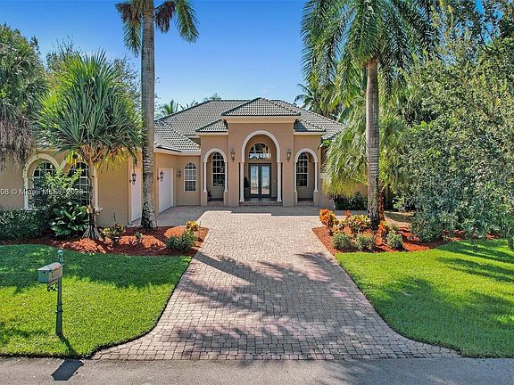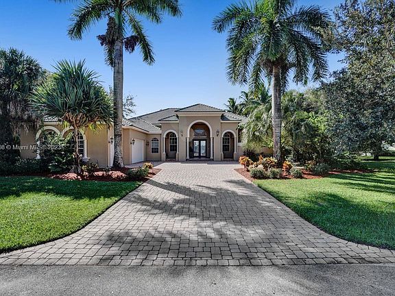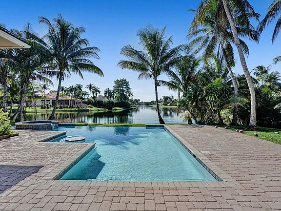 Simply stunning half acre waterfront lot in Exclusive Stonebrook Estates community in the equestrian Town of Davie. Home is located on the best lakefront lpoint ot in the community with long tranquil lakeviews from the moment you enter home with gorgeous remodeled infinity edge pool and jacuzzi. Fantastic one-story split floor plan with 5 bedrooms PLUS office,4 bathrooms,3 car garage and 18 foot ceilings. Beautiful chef's kitchen with Sub Zero refrigerator, gas stove, wood cabinets and granite counter tops. Huge master suite with adjacent sitting/gym area and large walk-in closets. Grand master bath with granite and double shower heads. Freshly painted inside and outside. Solar water heater. Accordion shutters.True pleasure to show and you will be impressed!
