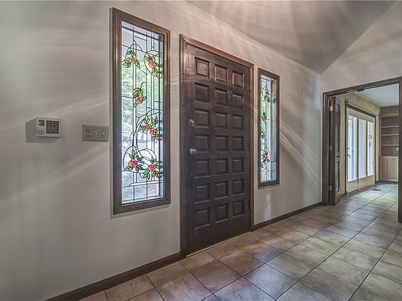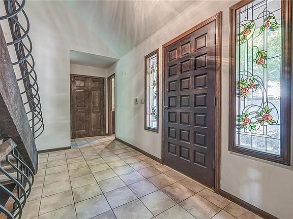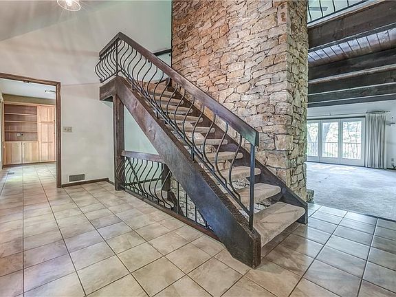 Situated overlooking the 17th fairway of the Leawood South golf course sits this grand dame of a home. Original owner and was custom built for entertaining and a large family! Total sq ft (including garage) is 6003 but wait, this number does not include the three outdoor balconies/covered porches on all three levels!!! Massive 2 story stone fireplace give the spaces a wonderful homey feel and the wall of windows/doors to the west offer fantastic light and a view to die for. Sweet courtyard welcomes you inside to front door or to kitchen. Custom kitchen completed in the early 2000s, upstairs features 2 bedrooms and a loft area, laundry room and half bath off the kitchen, architectural 50 yr roof shingle, zoned hvac, 200 amp electrical. Lower level is spacious with three areas of storage, full 2nd kitchen, family room + game room and full bath. Stained glass windows in entry were originally in the Armour house in Chicago. Truly a very special home!