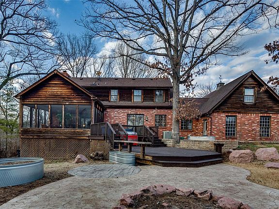 Rare opportunity to own a private 3.3acre estate featuring 4BR & 3.5BA in the heart of Sunset Hills! Charming aggregate driveway welcomes you onto the property. Home boasts apx 4500 sq ft of living space! Updated chefs Kit includes upscale appliances, honed granite island & HUGE walk-in pantry! First flr showcases 9ft ceilings , 2 fireplaces, wide planked wd flrs & modern farmhouse updates galore. Main fl ldry w sink & mud rm. Updated Master Ensuite w/spa-like marble bath & 2 closets. Bright finished W/O LL w rec rm w/ built ins, hobby rm. 3 car side entry garage & huge oversized parking area. This relaxed setting offers farm to table lifestyle, grow your food on site! Outdoor features include landscaped garden w/ firepit, bi-level deck, raised herb garden beds, native Missouri flowers, water feature, play structure & Rose Quartz granite boulders sprinkled throughout grounds. Your opportunity to own a beautiful piece of property with no subdivision restrictions, bring your horse too!