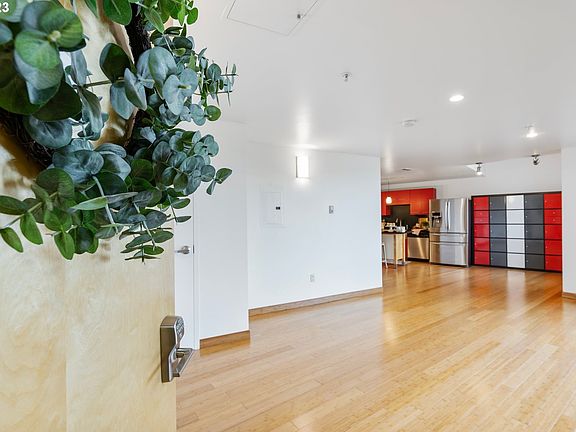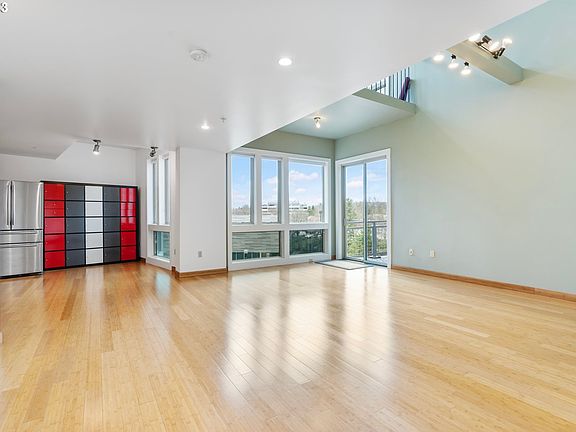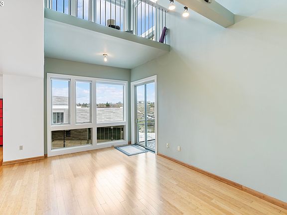 The Lofts at the Round is an urban oasis in the heart of vibrant downtown Beaverton! Enjoy hip loft living in this unique location! Steps to cafes, coffee shops, dining, parks, food cart pod, entertainment, and acclaimed Resers Cultural Arts Center. Pop on the MAX to zip around town or to the airport. Light floods through this 2 story lux condo with floor-to-ceiling windows! Featuring soaring vaulted ceilings, bamboo floors, contemporary kitchen cabinets, kitchen island, professional Viking range, SS appliances, apron sink, quartz countertops, and oodles of storage. Relax in the large primary suite featuring double closets and a spa-like bathroom with double vessel sinks. Light-filled loft adjacent to the primary can be used for office, exercise equipment, yoga mat, creative space, etc. Washer & Dryer are conveniently next to primary suite. Enjoy morning coffee on the deck with a duck pond and West Hills view. Zero maintenance and secured entry. Lock and leave or partake in all the local delights. Secure parking garage with deeded parking space and easy access to Nike, hwy 217, 26, and high-tech corridor. HOA covers Heat, AC, Water, Garbage, Maintenance, Mgmt, and Sewer. The front entrance is double doors to the right of Beaverton Area Chamber of Commerce office next to breezeway.