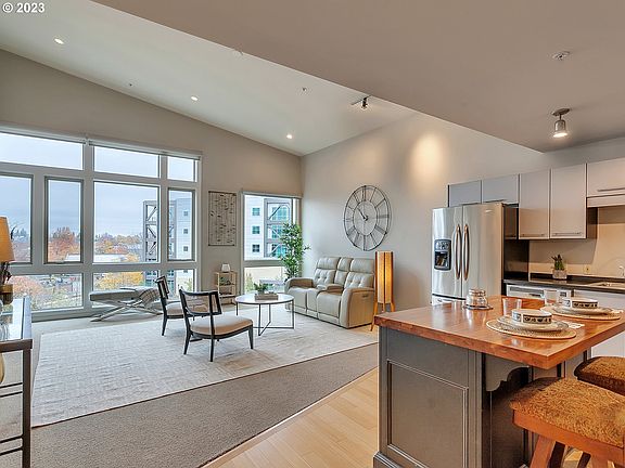 If you haven't been to The Round in Beaverton in a while, it's time to take another look! Experience modern living and convenience at its very best. Perfectly-sized 1 bedroom condo with fantastic finishes in a well-maintained building. Quiet and secure penthouse level condo. Vaulted ceilings and soaring windows allow for for maximum light in this South facing home. Stainless appliances, including a built-in microwave, side-by-side fridge and double oven. Super cool kitchen island with additional storage. Stunning living room with a gas fireplace, vaulted ceilings and a soaring wall of windows providing a fantastic VIEW of MOUNT HOOD. High-end blinds throughout - including black-out blinds in the bedroom. Best of all, there's a large balcony that you can actually use. Convenient, in-unit washer and dryer with extra storage. Secured parking with possible EV charging. Simply an A+ location in the metro area's coolest and most attractive residential hub. Step out your door and right onto the MAX (light rail) - 1/2 way between downtown Portland and the Tech Parks. Do you like to travel? Simply lock your door and take the train straight to the airport for a stress free voyage. Right across the street from the shiny new and super modern Reser Center for the Arts. Mere blocks to the best restaurants, pubs and coffee in town - Cafe Mingo, DiCarli, Westgate Whisky Lounge and more! Three restaurants, a coffee house are located right on the building's promenade. Just a couple blocks away from Beaverton's biggest and best food pod with 30+ first-rate food carts. Seasonal concerts, performances and markets on the Round's promenade bring the entertainment to you! Come take a look before it's gone. Walk Score - 96. Bike Score - 86.