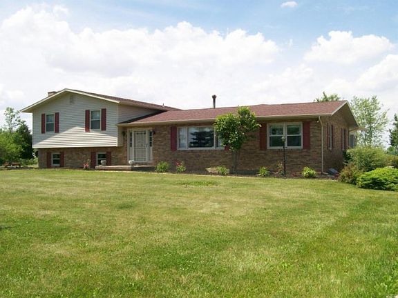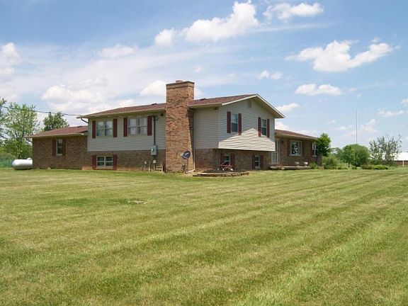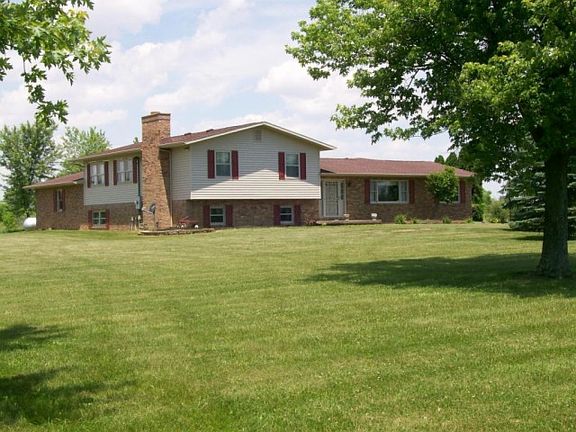 Located on SR 62 with an easy drive to Columbus...this beautiful split level brick home sits on approximately two-acres in a gorgeous country setting. With picturesque views from all areas of the house and 4168 square feet of living space, you'll enjoy the peacefulness of country living. Features of this unique home include five bedrooms, four bathrooms, first floor laundry, eat-in kitchen with pantry, dining room, living room, family room with gas or WBFP, ginormous rec room on lower level and/or mother-in-law suite with kitchenette, and plenty of storage. Full house generator, attic fan, new hot water tank, new windows, new siding, new shutters, and newer roof. Other features include inground pool, three-season room and side-load garage. Exceptionally maintained with only one homeowner.