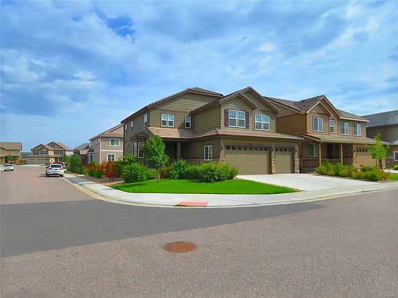 This is a families dream home situated in Meridian Office Complex, close to 470 and I-25 and DTC for an easy commute. The family community has a park and game fields. This home has every upgrade you can imagine. You're welcomed by an open staircase, with iron and wood spindles. Just off the formal dining room the gourmet kitchen has all the latest stainless steel appliances, a walk-in pantry, state of the art downdraft system, granite counter tops w/tile backsplash, upgraded cabinets, eating space, and a large center island with bar seating. The large family room has a gas fireplace and stunning mantel w/tile surround. Upstairs are large bedrooms, spacious loft/game room, convenient laundry room, and a grand master bedroom w/5 piece bath and 2 walk-in closets. Other upgrades and features include coffered ceilings, whole home sound system, stamped concrete patio with plumbed gas grill, wood and tile flooring, large covered front patio, and a full unfinished basement w/rough-in.