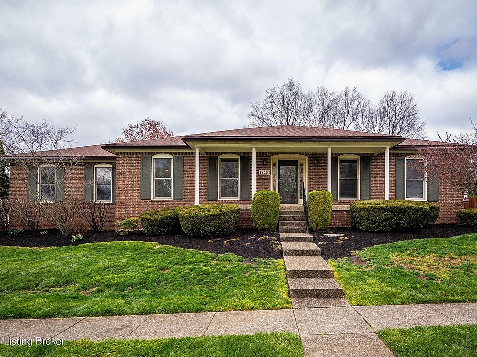 OPEN HOUSE TODAY 12- 2PM. Welcome to this corner lot brick ranch located in Towne Creek in the heart of Middletown.Side garage is on main level. The long covered front porch welcomes you into the traditional floor plan beginning in the foyer, formal living room & formal dining room. The family room with wood beam ceiling features a gas fireplace and built in bookcases. The french doors lead to the deck and backyard with plentiful landscaping which have their own irrigation system. The kitchen is complete with separate dining area in front of the bay window which overlooks the backyard. The updated kitchen has Granite countertops, plenty of new cabinetry, tile flooring, and a deep pantry. The primary bedroom has large walk in close and updated ensuite bath.1600 SqFt.unfinished in basement