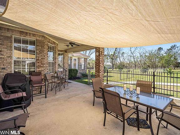 This spectacular brick home in Fairhope is nestled, in a park like setting, on 3 acres of beautiful manicured property. You won't be able to resist the Satsuma, Naval Orange, Blood Orange, Fig, Pecan and Pear trees throughout. Migratory birds sweetly call this Home Sweet Home. Three bedrooms and two baths, parquet floors, kitchen with stainless steel, electro lux brand double oven, granite, wood cabinets, and spacious pantry. Living room has high ceilings a cozy fireplace and room for gatherings. Separate dining room overlooks the private and serene front yard. Huge master bedroom with en-suite and access to the patio. Ideal split bedroom plan, with spacious secondary bedrooms and hall bath with new flooring. Outside there is space for entertaining and enjoying nature. Oversized 2 car garage with attached 400 square foot storage room makes this the perfect spot for all your toys. Behind garage there is plenty of room for parking an RV or Boat. This home is right across from the popular Weeks Bay Plantation-blueberries abound! The driveway has a sensor signaling the arrival of guests. Buyer to verify measurements and all information deemed pertinent.