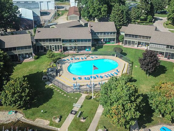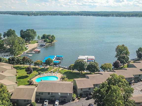 Updated & immaculate, turnkey 3-bedroom, 2 full bath condo, fully furnished & ready for instant lakeside fun. Fabulous location steps away from the pool & lakefront, an ideal spot for a weekend retreat, retirement or year-round living. The open concept main floor accommodates the kitchen, dining area & living room. The kitchen is stunning with white cabinetry, quartz countertops, tiled backsplash, undercabinet lighting, plus pendant lighting over the big island w/breakfast bar. All new stainless appliances in 2016 remain. Easy-care laminate flooring flows from the entryway, throughout the kitchen & main floor full bath. The adjacent dining area opens to the living room featuring a corner floor to ceiling light brick fireplace. 9â sliding doors allow you to view the lake from any location in this open floor plan. A covered patio extends your living space & provides easy access to the lake. Upstairs the master bedroom has a private enclosed porch for quiet sunset evenings. Open the 9â sliding doors to allow the evening breeze in. Two additional nice-sized bedrooms plus a full bath w/twin sink vanity complete this level. Conveniently located upstairs stacking washer/dryer remain. Decorated in cool tones throughout for a subtle beachy vibe. Special details include new water heater 2016, new carpet upstairs, Marvin windows, doors & two 9â sliders, ceiling lights & fans, plenty of closets, white trim package, HVAC 8 yrs. old; plus furniture, TVs, refrigerator in garage and weber propane grill are included. Plenty of room for sleepovers w/pull out sleep sofa & recliner. Amenities include 1 Pier slip, 2 personal watercraft slips, community pool, greenspace, 1 car detached garage & plenty of parking for guests. Enjoy incredible sunset views & maintenance free living in this lakefront condo where all the maintenance, yardwork, spring cleanup & winter preparations are taken care of. Lake Wawasee is the largest natural lake in Indiana; 25 miles of shoreline, 3000+ acres in size, with a maximum depth of 77 ft. This gorgeous lake is filled with relaxation, fun & recreation as an all sports lake for boaters & skiers, complete with a sandbar, 28 species of fish, boat accessible restaurants, marinas & yacht clubs. Start creating those lake memories today! Pier 754-011.