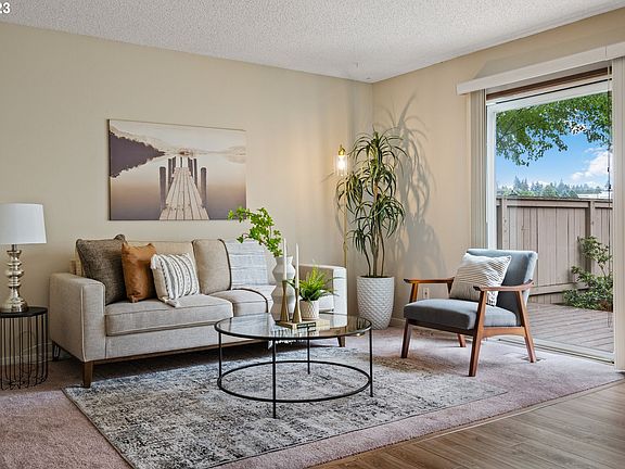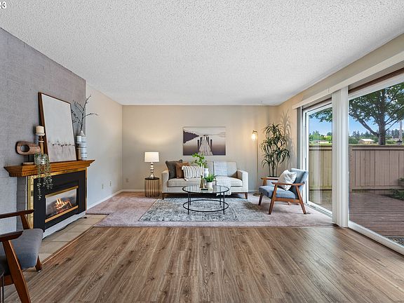 Welcome to this rare opportunity to own an affordable and immaculately cared for condo with only 1 shared wall! This thoughtfully designed two bedroom, two bathroom perfectly blends comfort, style and accessibility. Step inside and be greeted by a light-filled dining area and living room with floor-to-ceiling windows looking to the fenced outdoor space and garden. Ample storage and parking in the over-sized 2 car garage with an accessible ramp to the inside. Other amenities include air conditioning, tankless hot water and laundry space with full-sized washer and dryer. The primary bedroom is a serene retreat, offering generous dimensions, plush carpet and a full bathroom. The second bedroom is equally comfortable, presenting versatile possibilities as a guest room, home office or den. The additional bathroom features a walk-in, jetted bathtub. Cozy up to the living room fireplace or cool off in the community pool! This gem lives large! The monthly HOA fee covers the garbage, recycling, water, sewer and includes access to the pool, saunas & recreation facility. Nicely landscaped, common grassy areas and lovely walking paths throughout. Conveniently located near parks, the dog park, restaurants and freeway access-- this condo offers the best of both worlds--a peaceful retreat within easy reach of urban conveniences. With its accessibility features, this home is designed to accommodate diverse needs and provide a comfortable living experience for everyone. [Home Energy Score = 6. HES Report at https://rpt.greenbuildingregistry.com/hes/OR10215640]