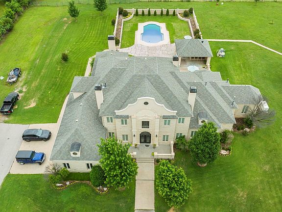 MUST SEE gated property in Jenks! One owner home with beautiful, private, tree lined drive on 7.5 acres! Expansive master wing has patio access, beautiful ensuite and an oversized closet. Gorgeous outdoor living area w/ updated kitchen and pool, perfect for entertaining. French Chateau style with travertine tile, mahogany wood floors, and elegant, hand painted trim. Additional office w/ half bath, a 30 x 40 shop, and loafing shed for horses make this property one of a kind! 2022-06-03