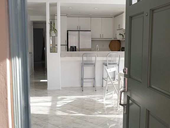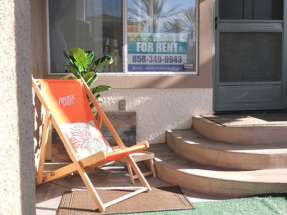 SUPER FRESH, BRIGHT AND BREEZY open floor plan Built in Mini Bar! In the Living room Ground level corner with lots of large windows Attached Two car garage with LED lights directly underneath Extra refrigerator and storage in the garage Across from the fountain, swimming pool, jacuzzi and fitness rm Two master bedroom suites with large walk in closets Full size bathrooms with shower and tub, double vanity Kitchen with pantry, bar for 4, led lights and window New Stainless steel upscale energy efficient kitchen appliances Two door SS refrigerator with filtered water and ice maker New high powered Gas stove and convection oven Super quiet large dishwasher New super capacity washer and dryer with storage above Coat closet Modern powder room for guests Hardwood and ceramic tile floors, no carpet Modern gas Fireplace with glass crystals and on/off switch New Remote controlled Ceiling fans with LED Lights, timers Crisp white paint, coordinated sun blocking grapes and privacy sheers Quick and easy walking access to the shopping malls, theaters, off leash dog park Private covered patio and Entry feels like a house with porch You will love this PRIME spot in Carmel Valley Must see; some pictures prior to upgrading Lap size pool, Hot spa and Fitness room included Pets are considered Pet rent fee varies. Water and trash included Gas and Electric paid by tenant. Parking for two vehicles is included in the enclosed garage Parking permit required for outside IAW HOA approval and fee. Subletting is not allowed.